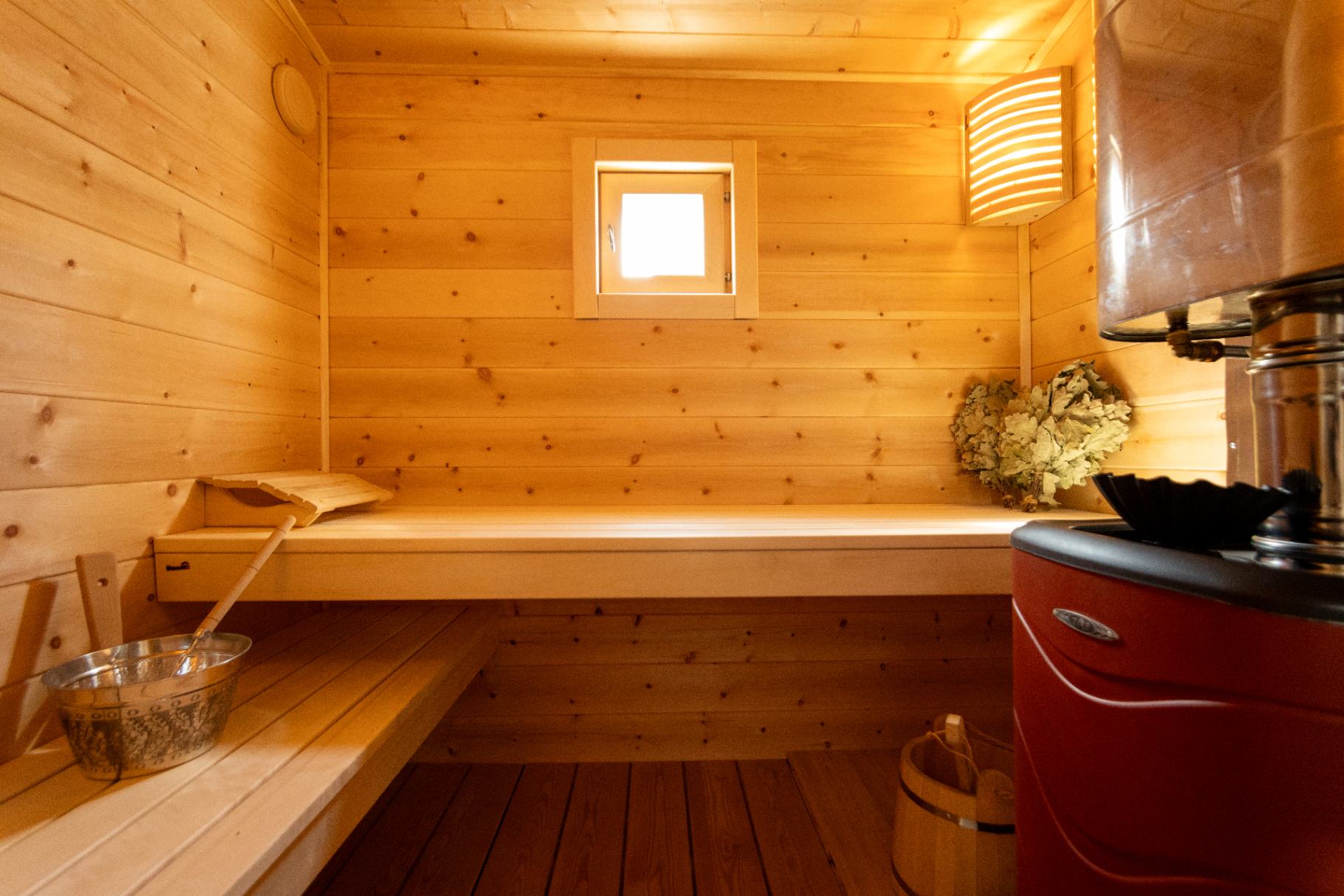 Построена по стандартам жилого строительства: тепло держится долго, прогревается быстро.